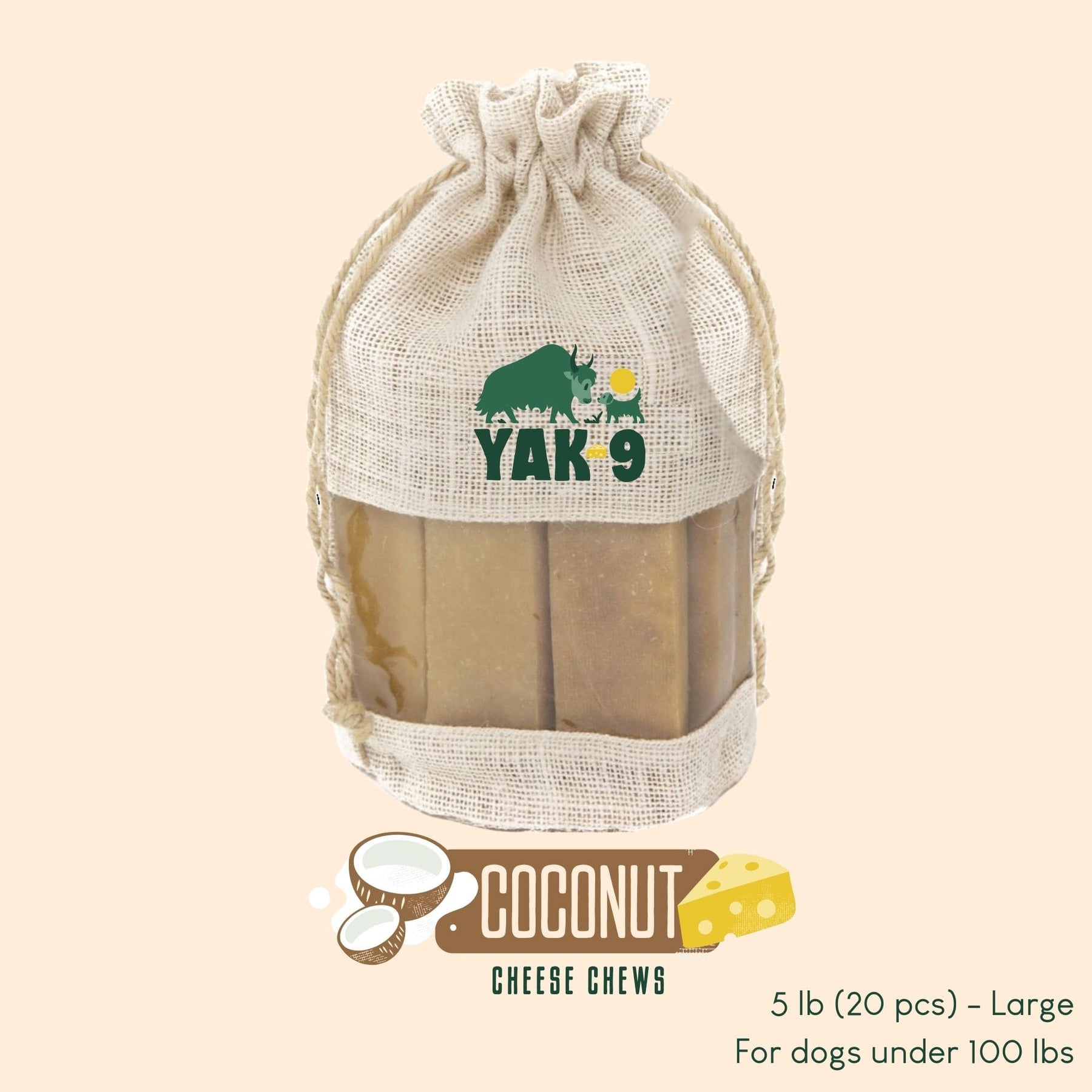 Are you looking for ways to give your dog a delicious treat without worrying about their health? Yak9 Chews’ savory tasting Coconut Cheese Chews will be your paw-fect choice. Featuring a deliciously unique combination of just three wholesome ingredients, these treats are sure to get your doggo’s tail wagging. Made from pure and premium yak and cow milk blended with coconut, these long lasting hard chews are nutritious, flavorful, and provide your pooch with numerous health benefits in a sweet n’ savory taste they will love.